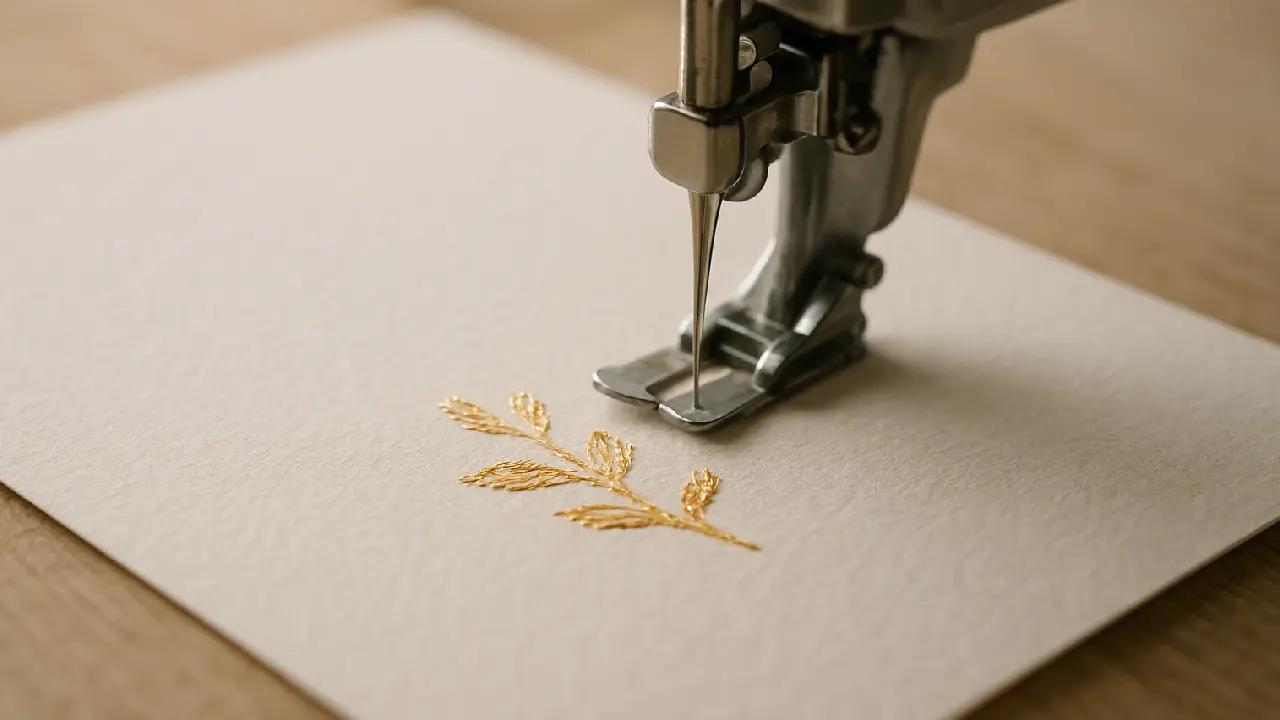 - Sew on high-quality cardstock, watercolor paper, or other heavy paper without decorative elements such as embedded leaves or flowers.